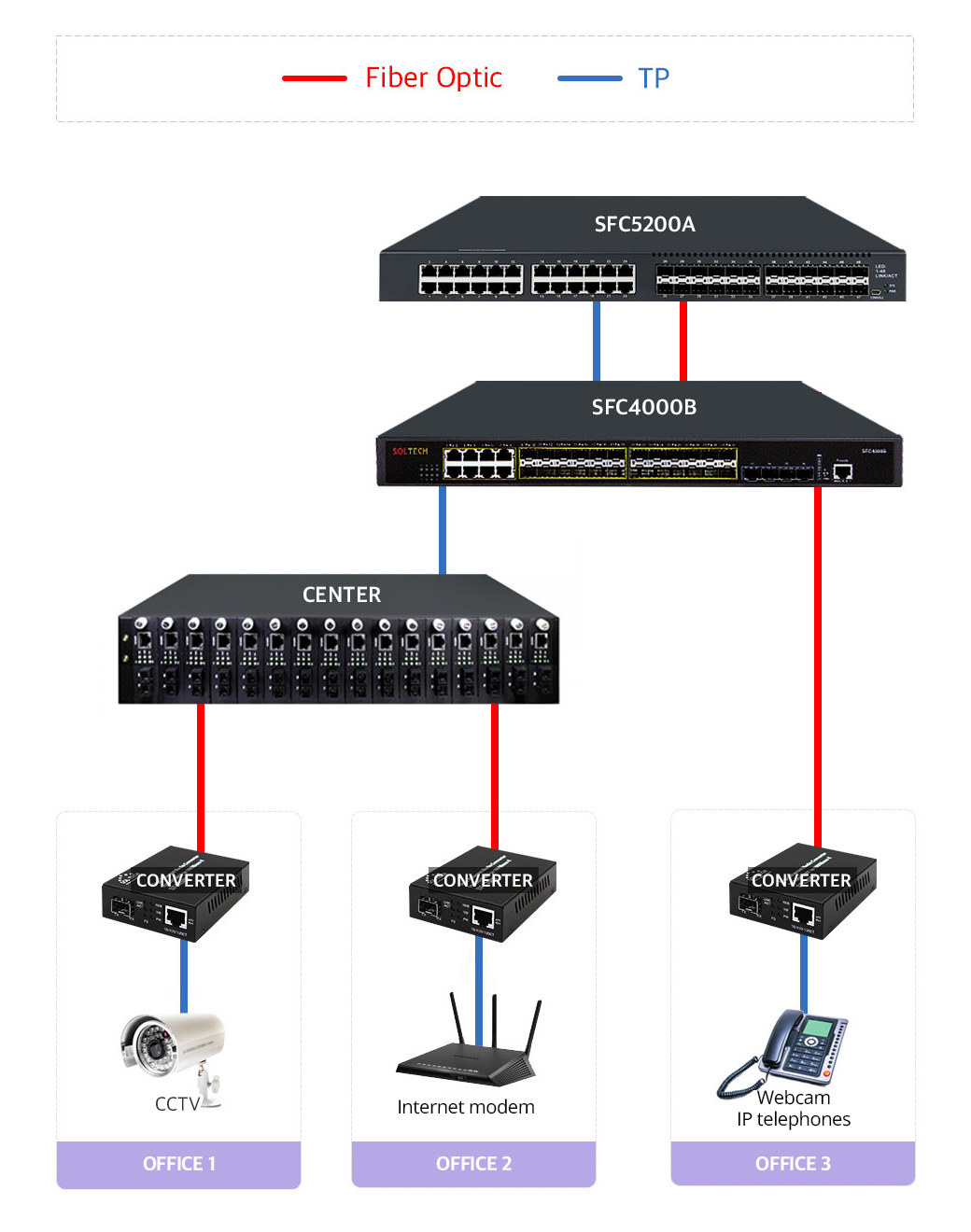 • Chuyển đổi TP (10/100Mbps) thành Cáp quang (100Mbps-FX) để truyền khoảng cách xa